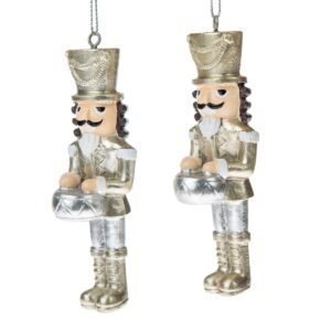 Nádherní luskáčikovia skvele doplnia vašu vianočnú výzdobu. Môžete ich zavesiť na stromček alebo kamkoľvek do interiéru. Ich oblečenie má typické vianočné farby, zlatú a striebornú.