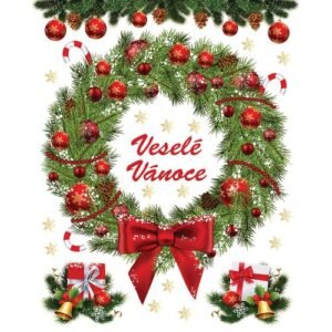 Ozdobte svoj domov touto krásnou samolepkou s vianočným vencom, ktorá prinesie do vášho interiéru vianočnú atmosféru. Elegantný vianočný veniec zdobený tradičnými prvkami, ako sú červené mašle, bobule a zelené listy je ideálny pre domácu dekoráciu počas vianočnej sezóny, ale aj skvelý darček pre priateľov a rodinu.