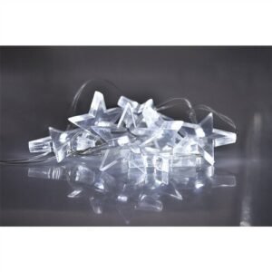 Svetelná reťaz s desiatimi čírymi hviezdami dokonale doplní vianočnú výzdobu. Môžete ju zavesiť do okna, položiť na poličku alebo ňou ozdobiť vianočný stromček. Technické parametre a špecifikácie: počet LED diód: 10 farba svetla: biela motív: hviezdy vzdialenosť diód: 15 cm dĺžka osvetleného kábla: 1,5 m farba kábla: transparentná dĺžka prívodného kábla: 1 m napájanie: 2x…