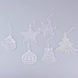 Nádherné háčkované ozdoby pripomínajú Vianoce za čias našich starým mám. V sade nájdete snehuliaka, vianočný stromček, ozdobu, hviezdičku, zvonček a vločku. Rozmery ozdobičiek: cca 10 x 11 x 0,1 cm.