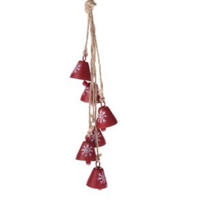Sada malých zvončekov sa skvele hodí na ozdobenie vetvičiek vo váze alebo na zavesenie na záclonu. Zdobené drobnou vločkou.
