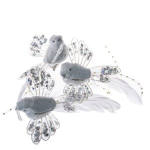 Vianočná sada 3 ks sivých vtáčikov s klipom, každý veľkosti 14 x 10 x 3 cm. Ideálne na ozdobenie stromčeka, vencov alebo dekorácií. Elegantný a jemný dizajn prinesie do vášho domova sviatočnú atmosféru.