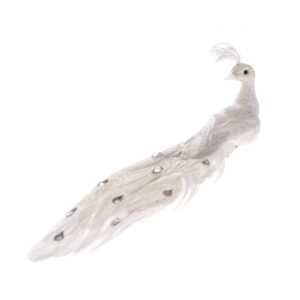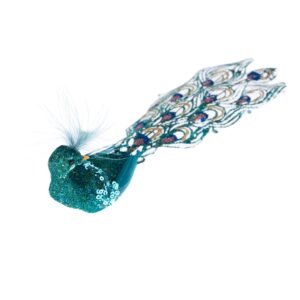 Netradičná vianočná ozdoba doplní výzdobu na stromčeku alebo na vetvičkách vo váze. Páv má dlhý chvost, hlavička a telo sú posiate trblietkami.