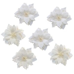 Sada šiestich bielych kvetov poinsetií so štipcom skvele doladí vašu vianočnú výzdobu. Vďaka štipcu sa ľahko pripevní aj na menšie vetvičky. Sú ideálne na ozdobenie vianočného stromčeka, vencov a girland.Balenie obsahuje šesť rovnako veľkých kvetov s priemerom 15 cm.