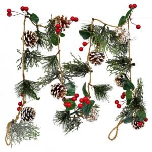 Oživte svoje interiéry prírodnou girlandou s dĺžkou 150 cm, ktorá dokonale doladí každý kút vášho domova. Táto krásna girlanda je navrhnutá so starostlivosťou a prináša do vášho priestoru kúsok prírody. Jej dizajn zahŕňa drevené hviezdy, umelé bazy, vetvičky cyprusu a borovice, spolu s prírodnými šiškami. Na oboch koncoch je doplnená pútkami na zavesenie.