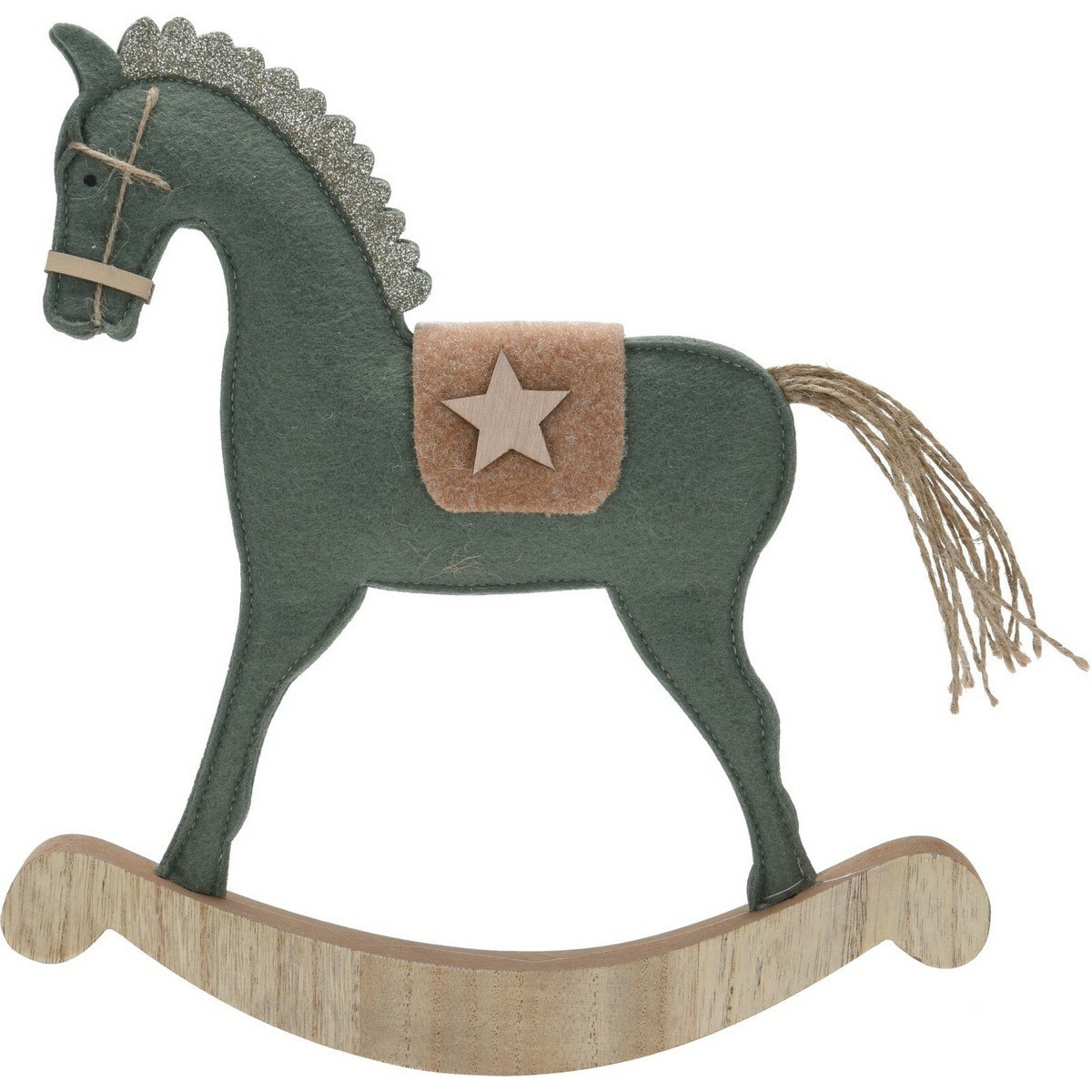 Hojdací koník na drevenom podstavci 30 cm, zelená, 28 x 30 x 3 cm