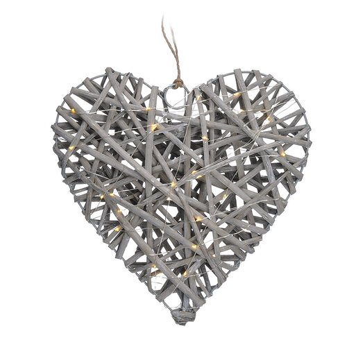 Závesné ratanové srdiečko vám bude prinášať radosť po celý rok. Má pevný kovový rám, na ktorom je ratanový výplet ozdobený svetelným drôtom s 30 LED diódami. Závesná dekorácia zútulní váš domov a po zotmení navodí krásnu atmosféru.Špecifikácia: ratanové srdce s LED diódami počet LED diód: 30 farba svetla: teplá biela (žltá) napájanie: 2 x AA batéria (nie sú súčasťou) výdrž batérií: cca 100 hodín (v závislosti na kvalite batérií) trieda ochrany: IP20 (vnútorné použitie) rozmer: 30 x 7 x 30 cm balenie: farebná krabica
