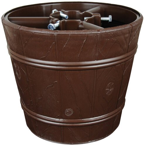 Mohutný plastový stojan na veľký stromček s kmeňom do priemeru 9,5 cm. Na spodku otvoru pre kmeň sú vyvýšené drážky kam je možné pred osadením stromčeka naliať vodu.