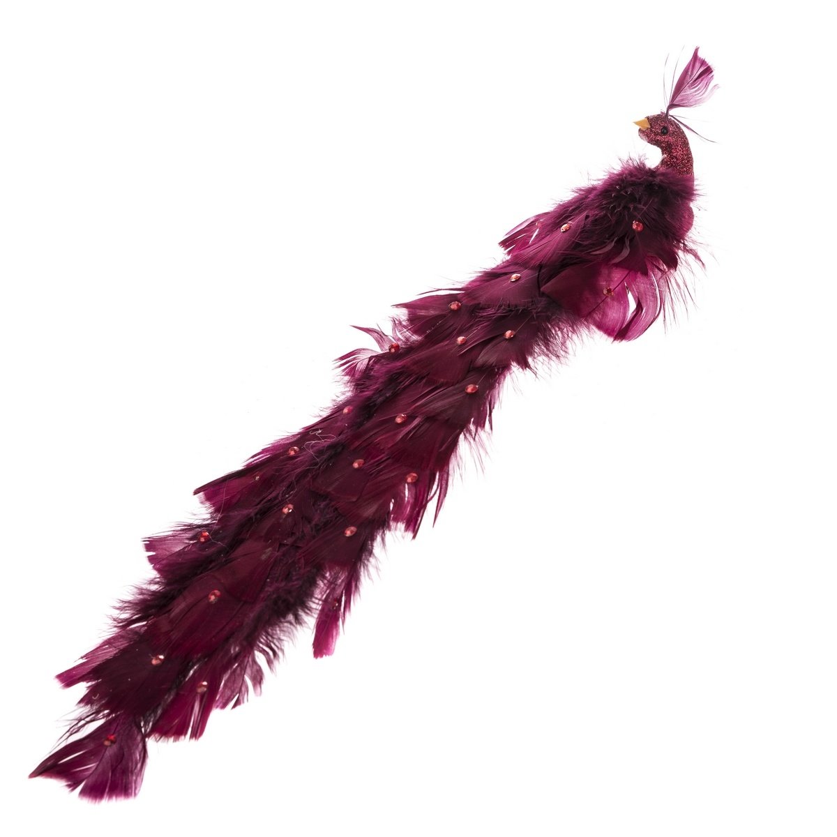 Vianočná dekorácia Páv na klipe tmavočervená, 40 x 7 x 5,5 cm