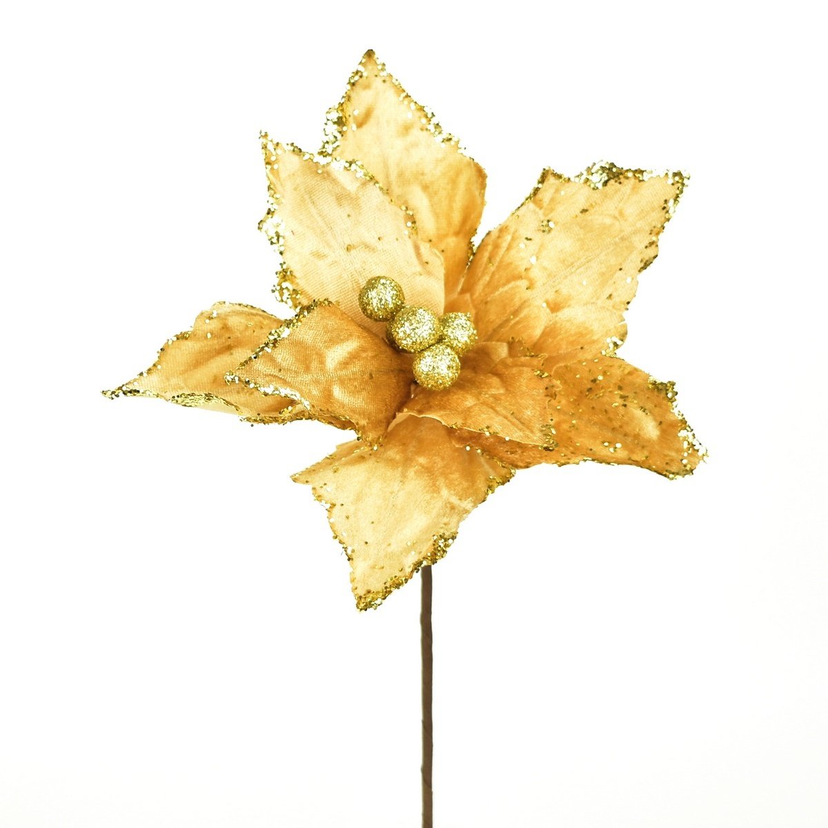 K vianočným sviatkom nepochybne patrí obľúbený kvet Vianočná hviezda. Má slávnostnú zlatú farbu a je zdobená zlatými trblietkami. Bude krásna vo váze aj ako prízdoba na veniec.