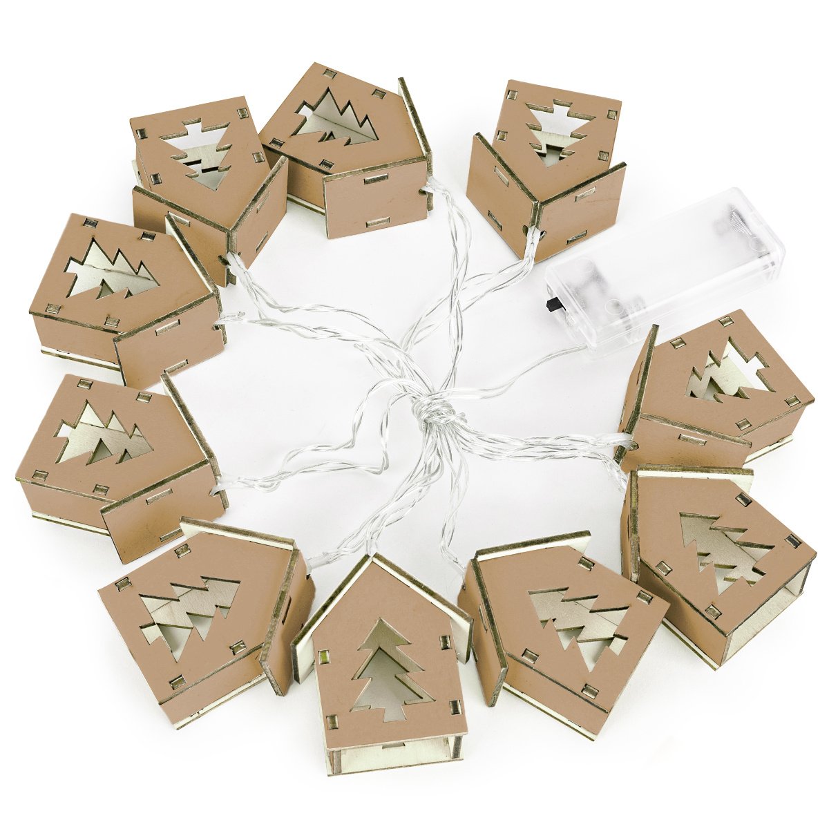 Nádherná svetelná dekorácia malých domčekov sa bude skvele hodiť do vianočne vyzdobeného domova. Každý z domčekov svieti teplým bielym svetlom. Sú vyrobené z drevenej preglejky. Dekorácia je napájaná dvoma batériami AA, ktoré nie sú súčasťou balenia.