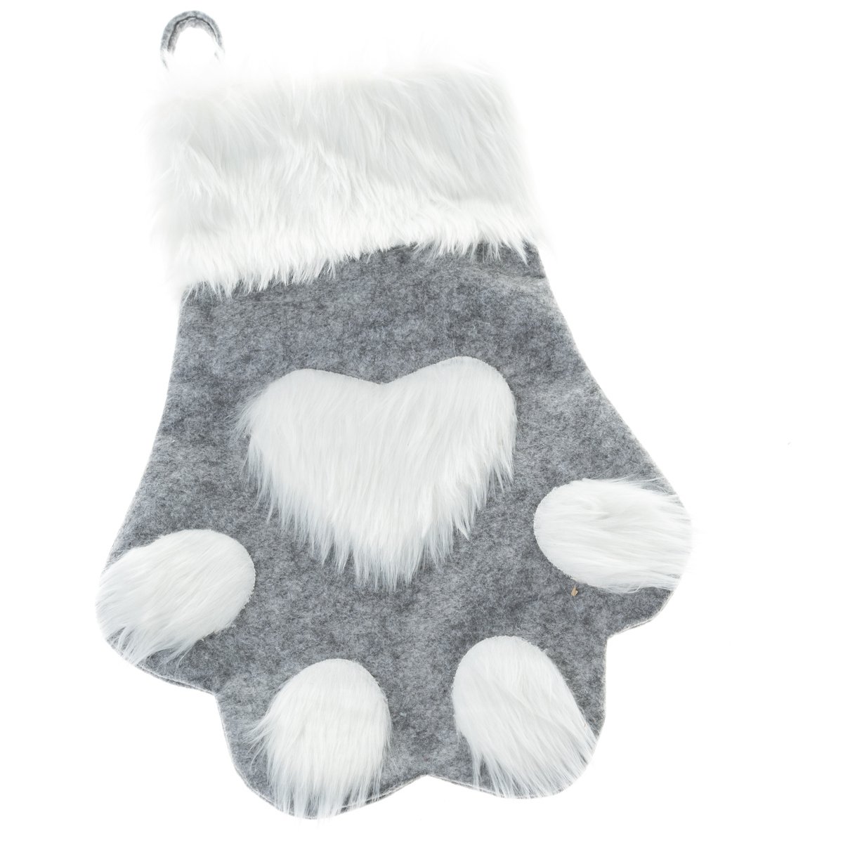 Vianočná textilná ponožka Labka 40 cm, sivá
